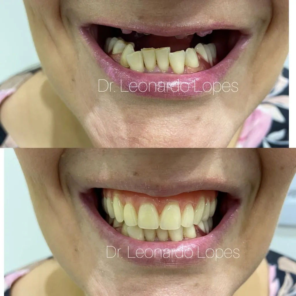 Depende do seu caso, mas em muitos pacientes o dente fixo já sai em poucos dias.